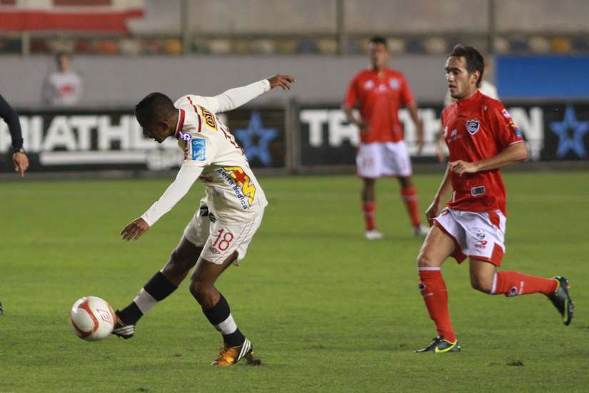 Una de las jugadas de mayor peligro para la visita salió de los pies de Cominges quien ejecutó un tiro libre que casi se mete al arco de Luis Llontop. La otra fue de Gárate que disparó de larga distancia. No hubo mayor peligro para la portería crema en la primera parte.