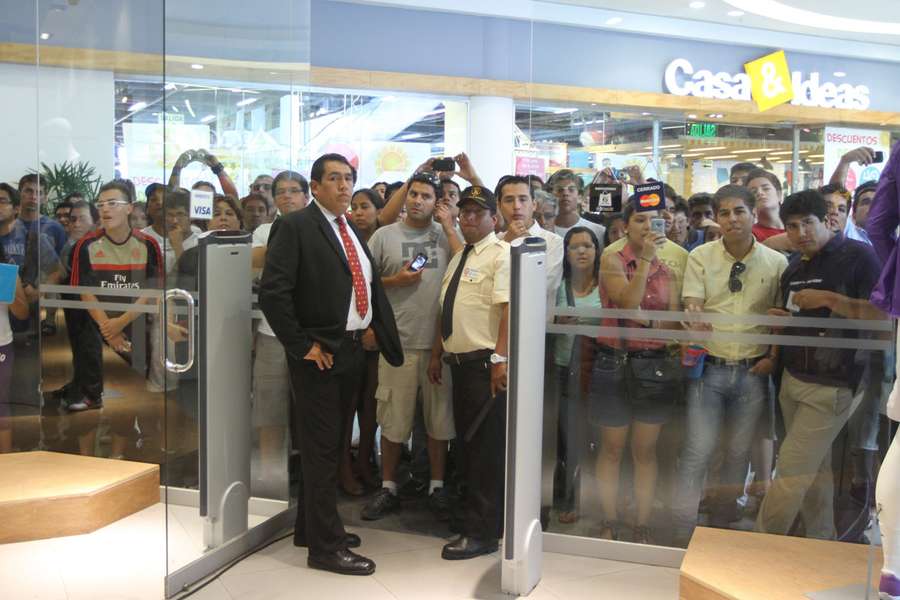 Los jugadores del plantel de Universitario de Deportes llegaron al centro comercial, donde se realizó la presentación de la nueva camiseta, con un personal de seguridad muy llamativo.