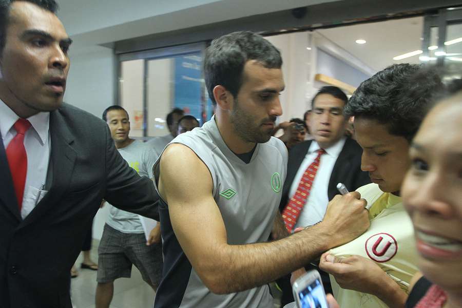 Pese a que la presentación fue en una tienda de UMBRO solo para la prensa, un centenar de hinchas acudieron y esperaron a los jugadores afuera del local por un autógrafo.