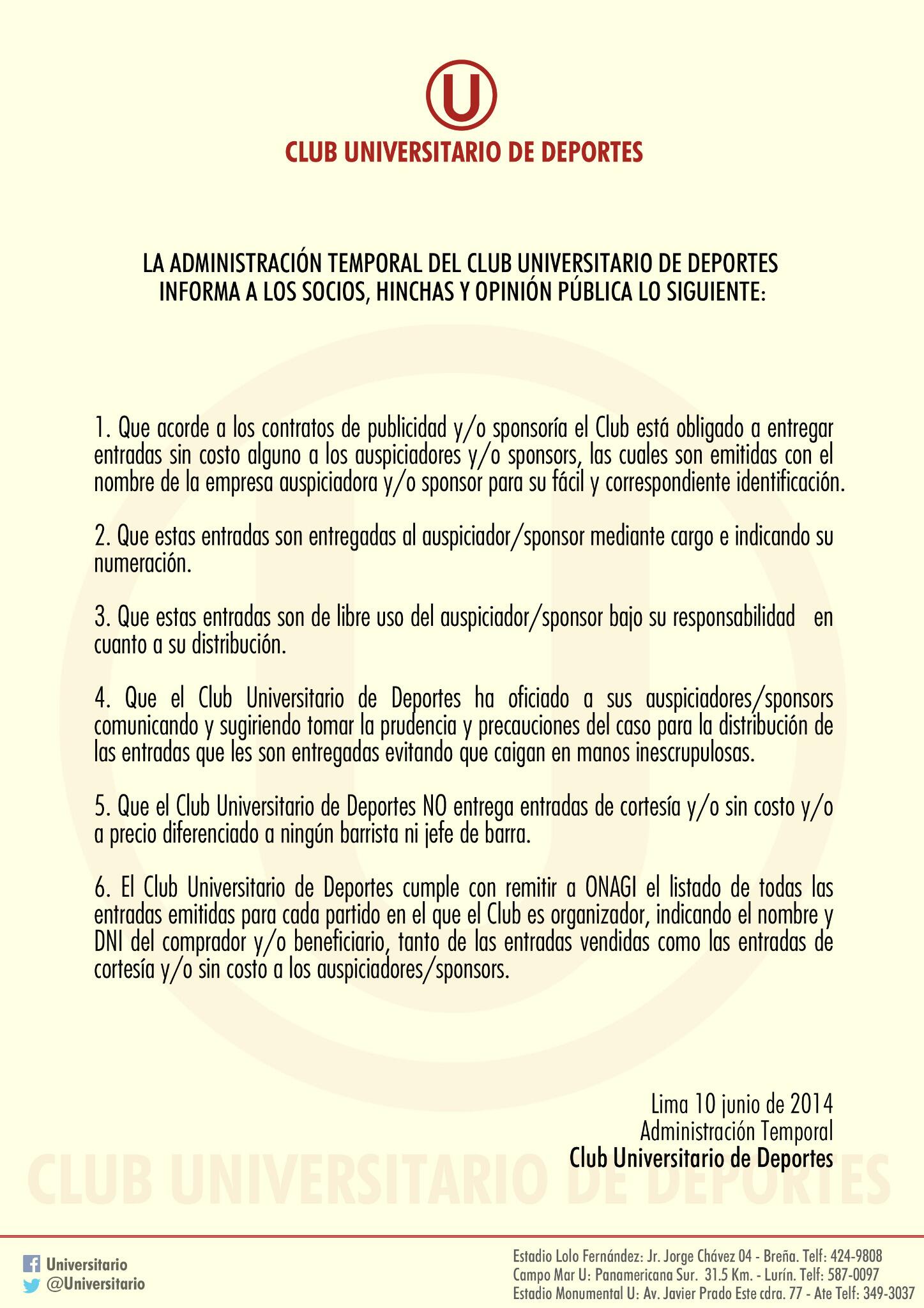 Asimismo, se conoció que las acciones legales ante FIFA contra la Universidad de Chile, en los derechos de formación de Ruidíaz, y Atlante (México), por el caso del juvenil argentino que jugó en el 2012, Martín Perpetua, se resolverán con novedades favorables para el club de Ate.