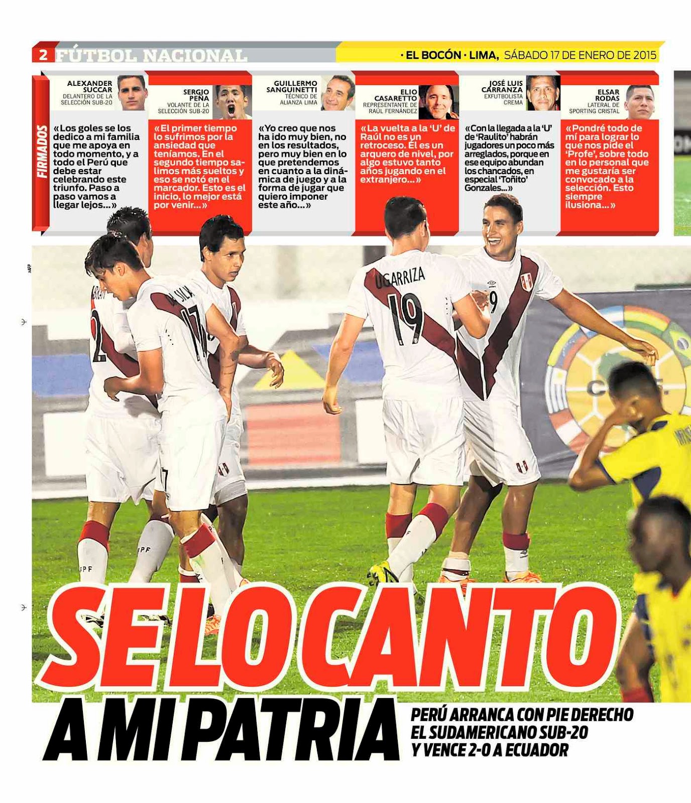 Los peruanos, antes de festejar, tenemos que sufrir y renegar. Y ello se pudo reflejar en el estreno de la rojiblanca en el Sudamericano Sub 20. Porque después de ser testigos de un inicio algo dubitativo, carente de ideas y sin actitud, la bicolor cambió de ‘chip’, lo que le permitió mostrar una cara distinta. Más brillante y feliz fue suficiente para sacar adelante un partido que por momentos resultó complicado. El equipo del ‘Chino’ Rivera ganó 2-0 a su similar de Ecuador por el Grupo ‘A’ y dio un paso importante en su afán de sellar su pase al hexagonal final, que tiene como premios clasificar al Mundial de la categoría en Nueva Zelanda y los Juegos Olímpicos de Río de Janeiro.