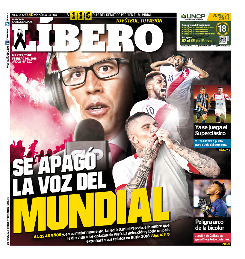 Se apagó la voz inconfundible que queda como sello de una clasificación que esperó toda una generación. Daniel Peredo ha fallecido y ha enlutado el periodismo deportivo nacional, que lo tenía como uno de sus principales referentes. Se va con solo 48 años, sin poder cumplir uno de sus sueños: narrar los partidos de la selección en el Mundial.