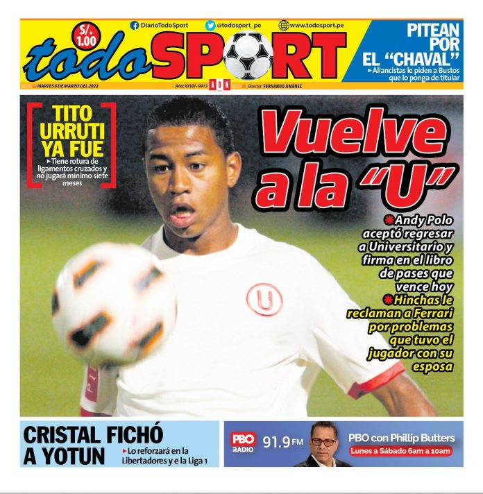 Fuente: https://libero.pe/futbol-peruano/universitario/2022/03/07/universitario-quiere-repatriar-andy-polo-proximas-horas-son-claves-liga-1-futbol-peruano-ultimas-noticias-46272